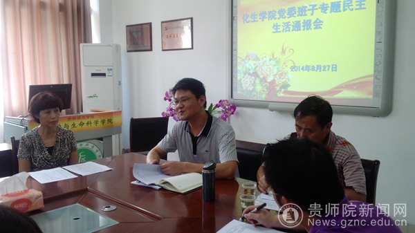 8月27日中午1点,化生学院在宁静楼525会议室召开党委领导班子专题民主生活会情况通报会。学校第三督导组副组长邓泽健、联络员王章基,化生学院党委书记韩宝银,院长王超英,副书记干正洋,副院长任翠娟,教工党支部书记朱富寿,全体教师党员,各系主任,教研室主任,民主党派代表,无党派人士代表参加了会议,会议由韩宝银主持。