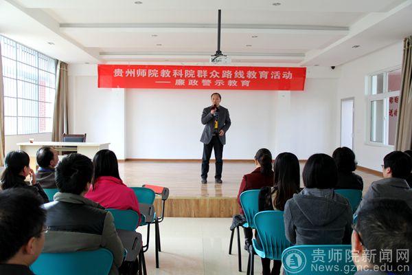 3月26日下午,教育科学学院党委组织全院教职工到贵州省第一女子监狱开展党的群众路线教育活动之廉政警示教育,贵州省第一女子监狱服刑人员指导中心赵明芳主任、高云等干警,教育科学学院党委书记彭祥友、院长郭文及教职工参加了廉政警示教育活动。