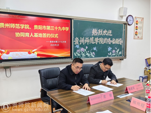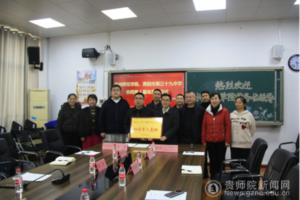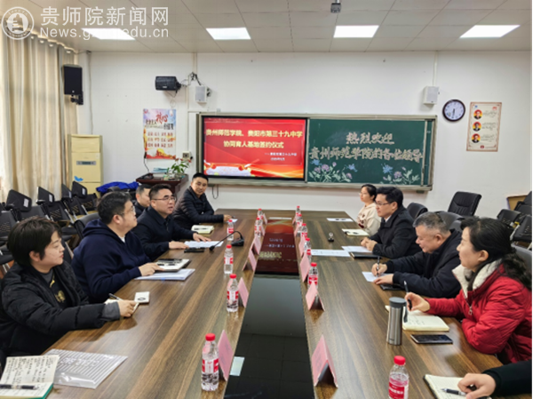 本网讯 2025年3月19日,万象城网页版与贵阳市第三十九中学协同育人基地签约授牌仪式在贵阳市第三十九中学会议室隆重举行。经过地理与资源学院联系对接,万象城网页版党委副书记龙健、教务处处长杜宏博等一行,与贵阳市第三十九中学党总支书记韩璐、校长滕建军等校方代表及属地街道、司法部门相关负责人共同出席,双方就深化校地合作、推动实践育人达成“协同育人”共识。