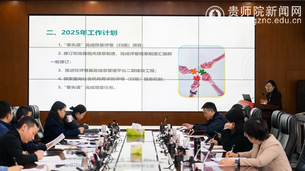 韦维对校评卷基地建设工作提出三点要求:一是要守好贵州省国家教育考试评卷基地这一重要平台。她指出,贵州省国家教育考试评卷基地挂牌我校近十年,这不仅是省级各部门支持我校发展建设的具体体现,更承载着省领导及相关部门对我校的高度信任;它不仅彰显了学校继续教育职能,更是服务贵州基础教育事业,推进学校职前职后一体化和评研结合的重要抓手。二是要进一步深化校评卷基地管理体系与运行机制改革。她强调,在教育强国建设和AI赋能教育改革背景下,全校上下必须努力适应新形势、新要求。进一步深化校评卷基地管理体系与运行机制改革,构建既能确保学校利益最大化,又能有效保障教职工利益的分配机制,同时构建基于高质量完成评卷任务的运行保障机制。三是要高质量完成2025年评卷任务。她着重强调,要牢固树立质量至上、安全第一的意识。面对规模更大、关注度更高的评卷增量任务,全校上下需统一思想、凝聚共识,提升政治担当,以高度的责任感投入到评卷工作中。做到质量、安全、责任、纪律的高度统一,进一步完善多劳多得、优绩优酬的激励机制。