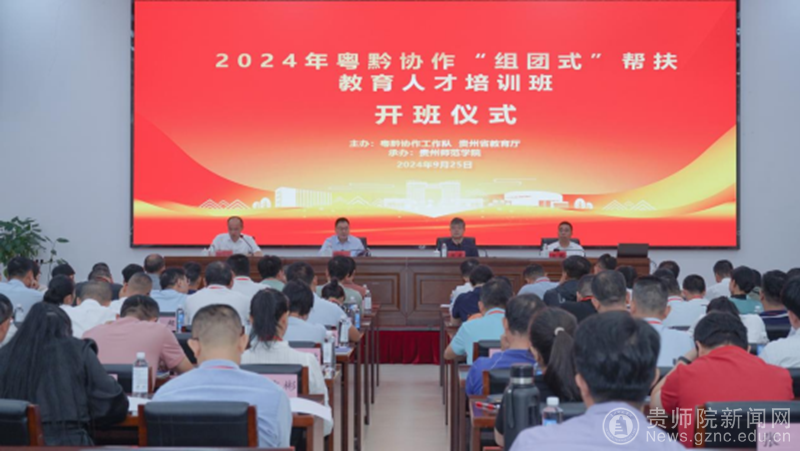 本网讯 9月25日,由粤黔协作工作队、贵州省教育厅联合主办、万象城网页版承办的2024年粤黔协作教育人才“组团式”培训班开班仪式在我校举行。广东省教育厅党组成员、副厅长程大欣,贵州省教育厅党组成员、副厅长周进出席并讲话,粤黔协作工作队党委副书记、纪委书记祁又才主持,学校党委副书记龙健致辞。