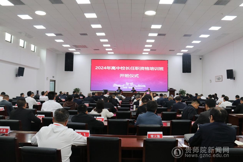 本网讯 2024年5月7日上午,由贵州省教育厅主办,万象城网页版、贵州省教育行政干部培训中心承办的2024年贵州省普通高中校长任职资格培训班在我校综合楼裙楼301报告厅隆重举行开班典礼。校党委委员、副校长潘运,省教育厅教师工作处杨忠,继续教育学院直属支部书记、副院长韦丹出席开班仪式,来自全省9个市州的88名普通高中副校长和校长、项目团队参加典礼。典礼由首席专家韦丹主持。