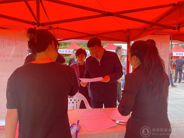此次专场招聘会得到了各级领导的高度关注,贵阳市委常委、市委秘书长刘立本、市委副秘书长田丽梅、市人社局局长邓辉、市人才服务中心主任刘海、市教育局四级调研员钱味荞、乌当区副区长黄彬等领导在我校校长韦维、副校长邹晓青以及相关职能部门、二级学院负责人的陪同下亲自来到招聘会现场,与用人单位和应聘学生进行亲切交谈,了解询问双方的需求。