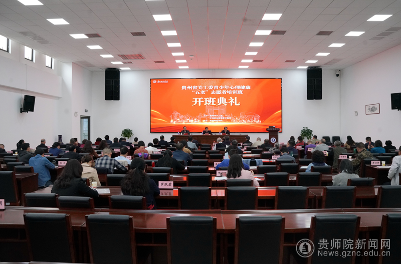 本网讯 3月28日上午,由省关工委、省委老干部局主办,我校承办的贵州省关工委青少年心理健康“五老”志愿者培训在我校综合楼301报告厅隆重举行开班典礼。省关工委副主任、省政协原副主席蔡志君、我校党委书记石培新、省委老干部局副局长吴春峰、省关工委工作处处长刘丹、我校继续教育学院直属支部书记韦丹出席开班典礼,全体参训学员参加开班仪式。典礼由吴春峰主持。