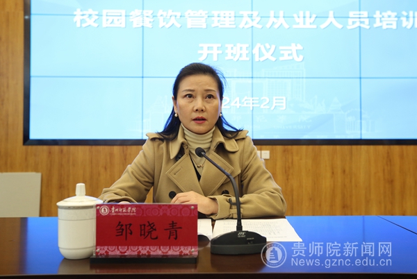 本网讯 2024年2月23日,为进一步提高食堂、商超美食城食品安全工作水平和安全生产意识,提升餐饮从业人员熟练掌握食品卫生和消防安全相关法律法规知识,自觉在实际工作中遵守法规和食品卫生操作规范,我校在印山书院二楼会议室召开了校园餐饮管理及从业人员培训开班式及培训会。校党委委员、副校长邹晓青,贵阳市乌当区市场监督管理局高新分局局长冯强及相关同志,万象城网页版后勤服务有限公司,食堂、商超负责人及从业人员共128名参加会议。会议由后勤处处长干正洋主持。