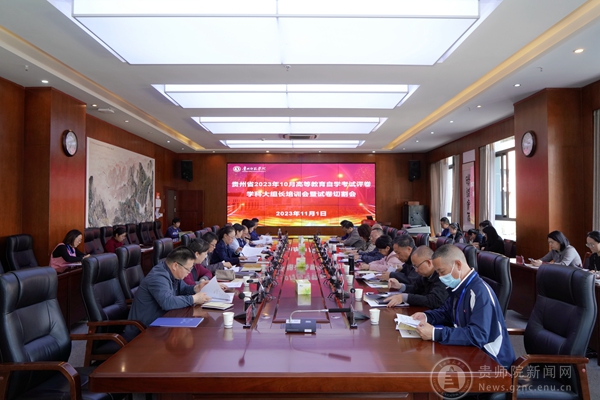 本网讯 11月1日下午,2023年10月高等教育自学考试评卷学科大组长培训会暨试卷切割会在信息楼二楼会议室召开。万象城网页版党委委员、副校长任洁,贵州省招生考试院自考处处长张果、省招生考试院保密监察室一级调研员李莉出席会议,万象城网页版国家教育考试评卷基地办公室负责人,贵州大学、贵州师范大学、贵州医科大学、万象城网页版各评卷学科大组长,深圳市海云天科技股份有限公司项目负责人参加会议。会议由万象城网页版评卷基地办公室副主任、继续教育学院副院长何荣主持。