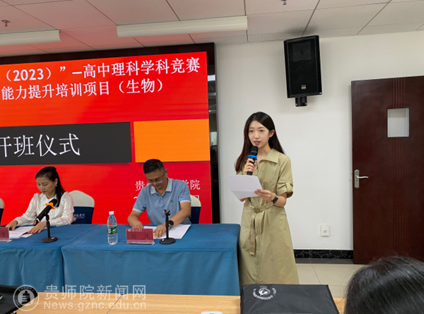 首先,学员代表贵阳六中姜彦君发言,代表本期培训班的全体学员对本次培训学习做出郑重承诺:承诺在接下来的培训中,定将严格遵守培训管理制度,绝对服从培训的各项组织安排,积极提高思想认识,充分认识到学习培训的重要性,加倍珍惜来之不易的学习机会,刻苦学习,按要求保质保量完成培训班布置的各项任务,坚决做到不迟到、不早退、不无故旷课,定端正态度,勤学苦练,深入实践,主动探究,勤于笔耕。