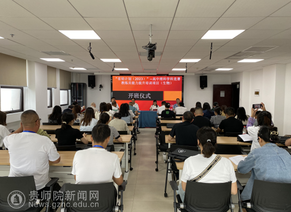 本网讯 9月4日下午,我校“省培计划(2023)”-高中理科学科竞赛教练员能力提升培训项目(生物)开班典礼于综合楼14-2楼教室厅隆重举行。校党委委员、副校长邹晓青出席仪式,生物科学学院党委书记孙秀华、院长刘讯、副院长钱长江、培训班班主任程搏幸博士、全体参训学员参加活动。典礼由生物科学学院院长刘讯主持。