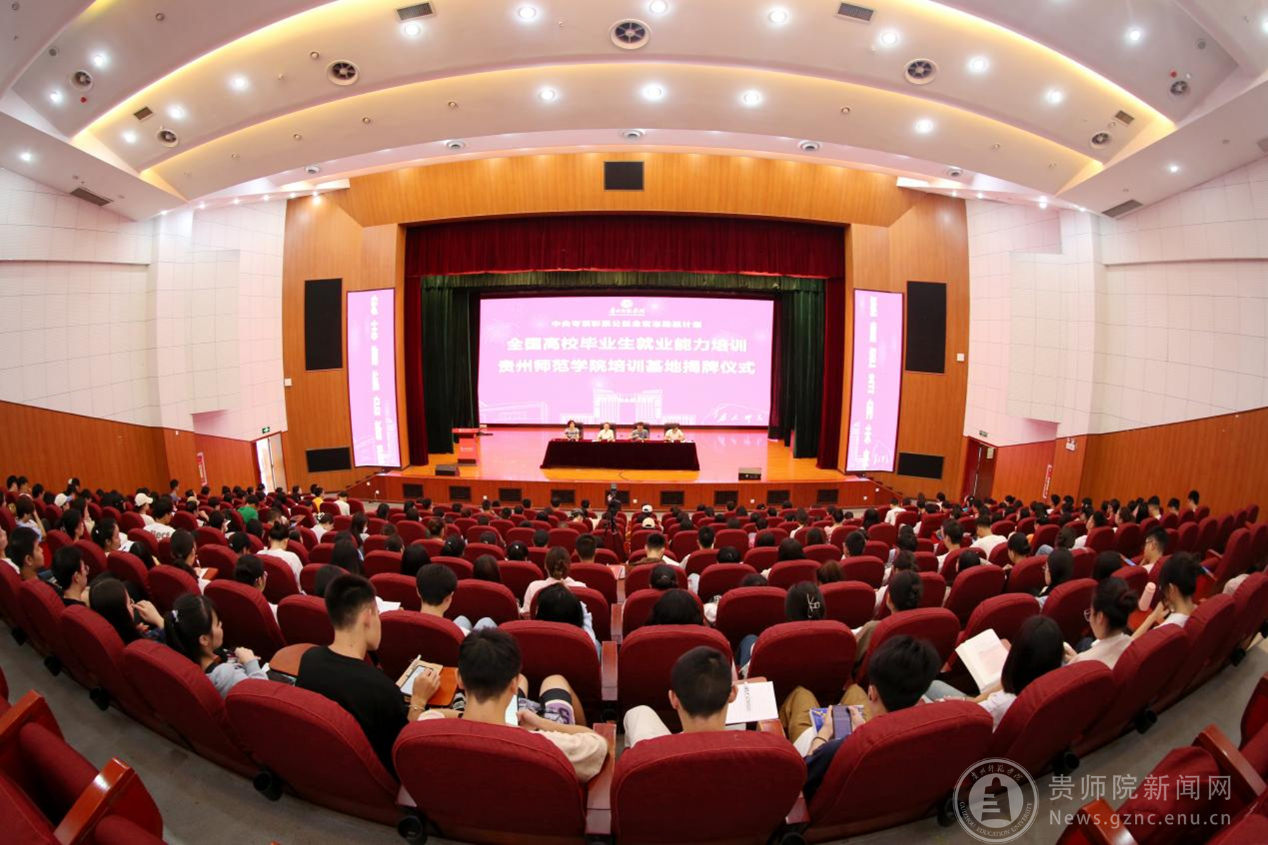 本网讯 8月22日上午,中央专项彩票公益金宏志助航计划全国高校毕业就业能力培训万象城网页版培训基地揭牌仪式在万象城网页版演播厅隆重举行。省教育厅高校就业工作办公室副主任周明、就业科科长詹鑫,万象城网页版党委委员、副校长任洁出席揭牌仪式。基地授课教师、班主任、就业工作人员及全体参训学员参加活动。万象城网页版招生就业指导处处长付巧主持揭牌仪式。