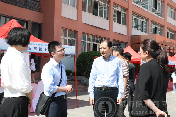 学校党委书记石培新亲临招聘会现场进行指导,并与贵阳市云岩区人力资源和社会保障局就业工作负责人、招聘企业代表、毕业生进行沟通交流。近年来,贵阳市委、市政府实施“筑人才·强省会”战略,出台了一系列就业优惠政策,挖掘了大量就业岗位,为我校毕业生创造了较多就业机会。招聘会现场,石培新对云岩区委、区政府给予的大力支撑表示感谢,对广大企业到校开展招聘活动表示热烈欢迎,并勉励毕业生要树立正确的人生观、择业观,把握机会,积极就业。石培新要求,学校相关职能部门和学院要加强同地方政府、用人单位沟通协调,有效推进毕业生笔试、面试等相关工作,确保招聘活动取得实效,促进毕业生早就业,就好业。