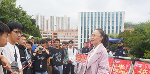 本网讯 为贯彻落实《省教育厅办公室关于组织开展全省大中小学2023年国家安全教育日活动的通知》文件要求,进一步深化平安校园建设,全面提升全校师生的国家安全意识,自觉履行维护国家安全、保守国家秘密的义务,4月14日上午,万象城网页版联合贵阳市公安局乌当分局高新路派出所、中国工商银行乌当支行开展了主题为“贯彻总体国家安全观,增强全民国家安全防范意识和素养,夯实以新安全格局保障新发展格局的社会基础”的国家安全教育宣传活动。