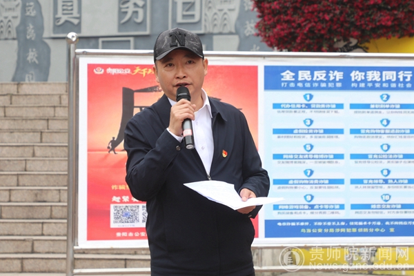 本网讯 为落实《省教育厅办公室关于做好开学季防范电信网络诈骗工作的通知》精神,维护美好和谐的校园安全稳定氛围,进一步做好防我校防电信网络诈骗工作,教育引导师生增强安全防范意识提升自我安全防护能力,3月15日,我校联合贵阳市乌当区政法委、乌当公安分局、贵州银行会展城支行、乌当移动公司举办“心中有法 无诈校园”主题宣传活动。校党委委员、副校长任洁出席活动并讲话。活动由保卫处副处长刘宪帮主持。