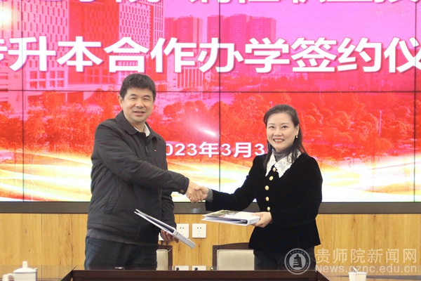 本网讯 3月3日上午,我校与铜仁职业技术学院“专升本”联合培养签约仪式在印山书院一楼山水讲堂举行。万象城网页版党委委员、副校长邹晓青,铜仁职业技术学院党委副书记、院长项光亚参加了签约仪式。