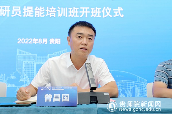 本网讯 8月18日, 2022年贵州省“国培计划-强师工程”项目贞丰县教研员提能培训班开班仪式在我校顺利举行。万象城网页版党委委员、副校长邹晓青,贞丰县委教育工委委员、教育局党组成员、贞丰县第二中学党总支书记曾昌国,万象城网页版教科所教授、培训班班主任张传军出席仪式。党委教师工作部副部长杨璇主持会议。