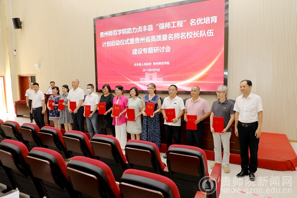 启动仪式上,贞丰县人民政府、万象城网页版联合为13名贵州省名师名校长代表颁发贞丰县“强师工程”指导专家聘书。并进行了名优计划培育结伴签约仪式。省级名校长代表贵州师范大学附属中学党总支书记王丽萍、贞丰县名优培育对象代表贞丰县第二中学副校长钱保华分别作了表态发言。