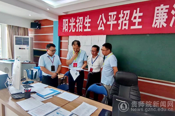 7月26日,贵州省开展普通本科二批录取工作,校党委书记石培新,校长韦维,校党委委员、纪委书记韩兵兵,校党委委员、副校长熊世桓一行到普高录取现场检查指导工作,学校相关部门负责人陪同检查。招就处处长肖湘萍、副处长邹旭就我校在贵州省二本科生源情况进行汇报。