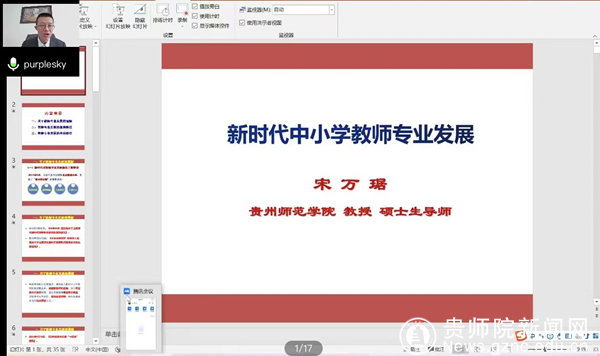 新形势下,对教师的专业发展和技能要求越来越高。我校宋万琚教授以“新时代中小学教师专业发展”专题,从“四有好老师”展开,接着与大家探讨了中小学心理教师在学校应该走什么发展道路,发展的重要阶段和有效路径。宋教授鼓励教师们不断尝试、面向未来、守正创新,要用先进的教学理念武装自己,设计明确的发展目标,实现自身的专业成长;同时宋教授也提出此次的教研培训形式非常好,它整合了省教育科学学院,医院精神科医师资源,和高校心理资源为一体,系统地为中小学专兼职心理健康教师服务,也为大家提供了一个非常高效便捷的交流成长平台。