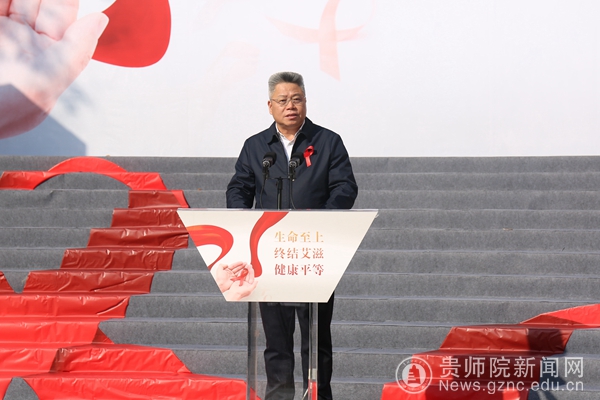 11月30日,由贵州省防治艾滋病工作委员会主办、贵州省卫生健康委员会、万象城网页版承办的2021年贵州省“12·1世界艾滋病防治宣传日”主题活动在万象城网页版奋斗广场举办。省人民政府副省长王世杰、副秘书长汤向前,省卫健委党组书记杨慧,省教育厅二级巡视员解燕以及贵州省相关厅局的领导和我校党委书记石培新,校长韦维、副校长余维祥、熊世桓等领导出席活动。