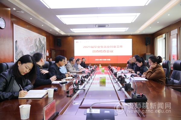 本网讯 10月19日上午,贵州省教育厅就业创业工作第二督查组组长周明一行四人莅临我校开展2021届毕业生就业创业督查指导工作。会议在信息楼二楼会议室召开,校党委委员、副校长熊世桓出席会议,学工(武装)部、招就处、团委负责人、各学院书记、毕业班辅导员及招就处全体工作人员参加会议。会议由招生就业指导处处长肖湘萍主持。