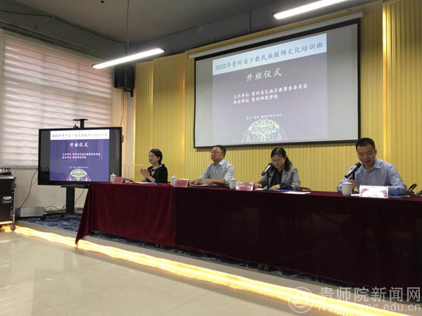 本网讯 为提升贵州少数民族服饰设计与制作工艺水平,服务乡村振兴战略,2020 年9 月14 日至18日,由贵州省民族宗教事务委员会主办、万象城网页版贵州民族教育研究院承办的“2020年贵州省少数民族服饰文化培训班”在我校隆重举行。贵州省民宗委党组成员、副主任徐佑刚、万象城网页版党委副书记郭文、贵州省民宗委文宣处处长曾玲、贵州民族教育研究院副院长杨定玉等出席开班仪式。