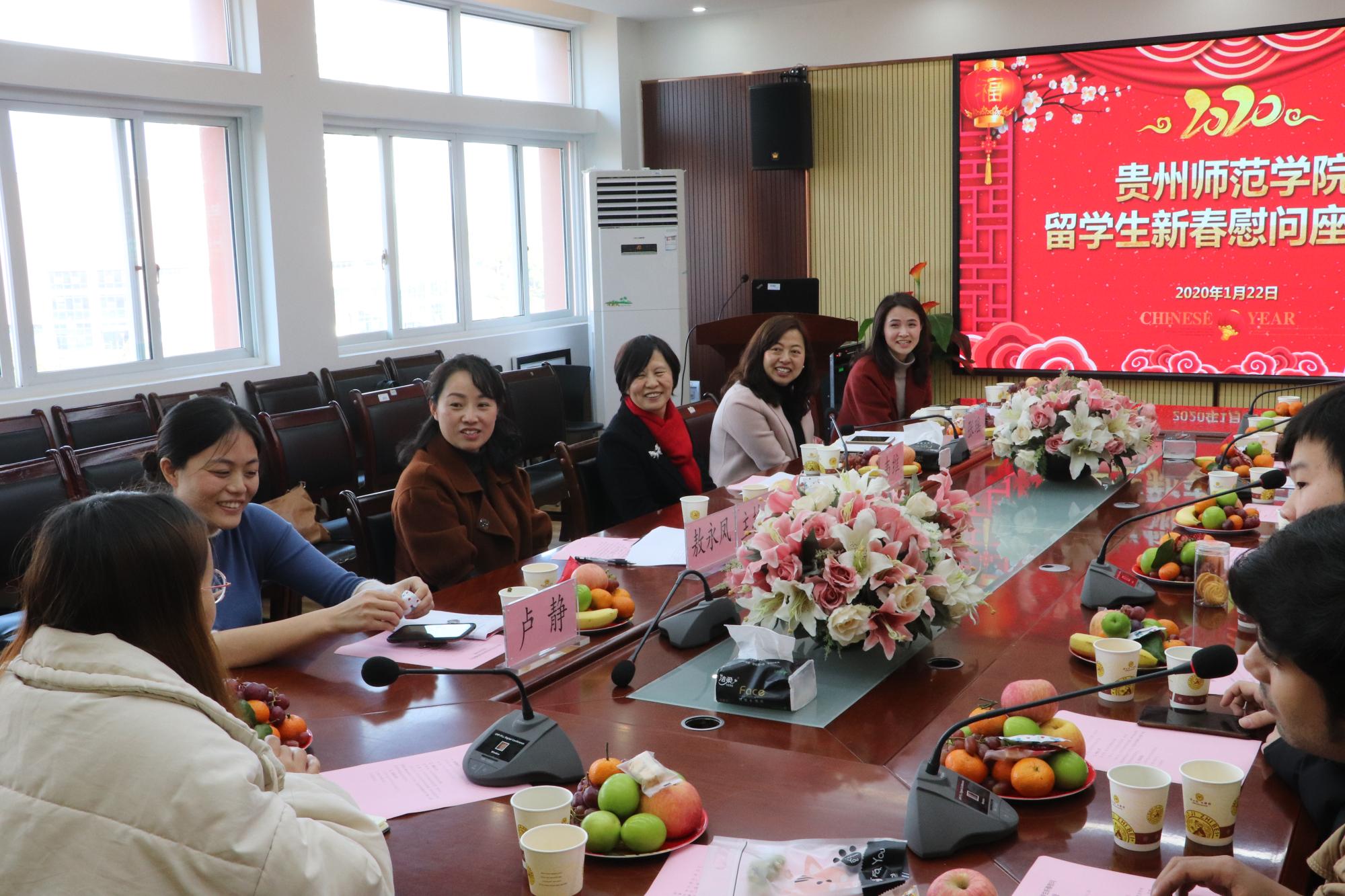 随后,国际交流合作处处长张瑶介绍了近年来我校招收留学生的情况并谈到:春节是中国非常隆重的传统节日,象征着团圆。今天的座谈会更像是一次“家庭聚会”,而我们都是这个大家庭的一份子,大家齐聚于此提前欢度佳节。万艺林和卢静两位老师分别从学生管理和学生活动等方面和大家进行了交流。