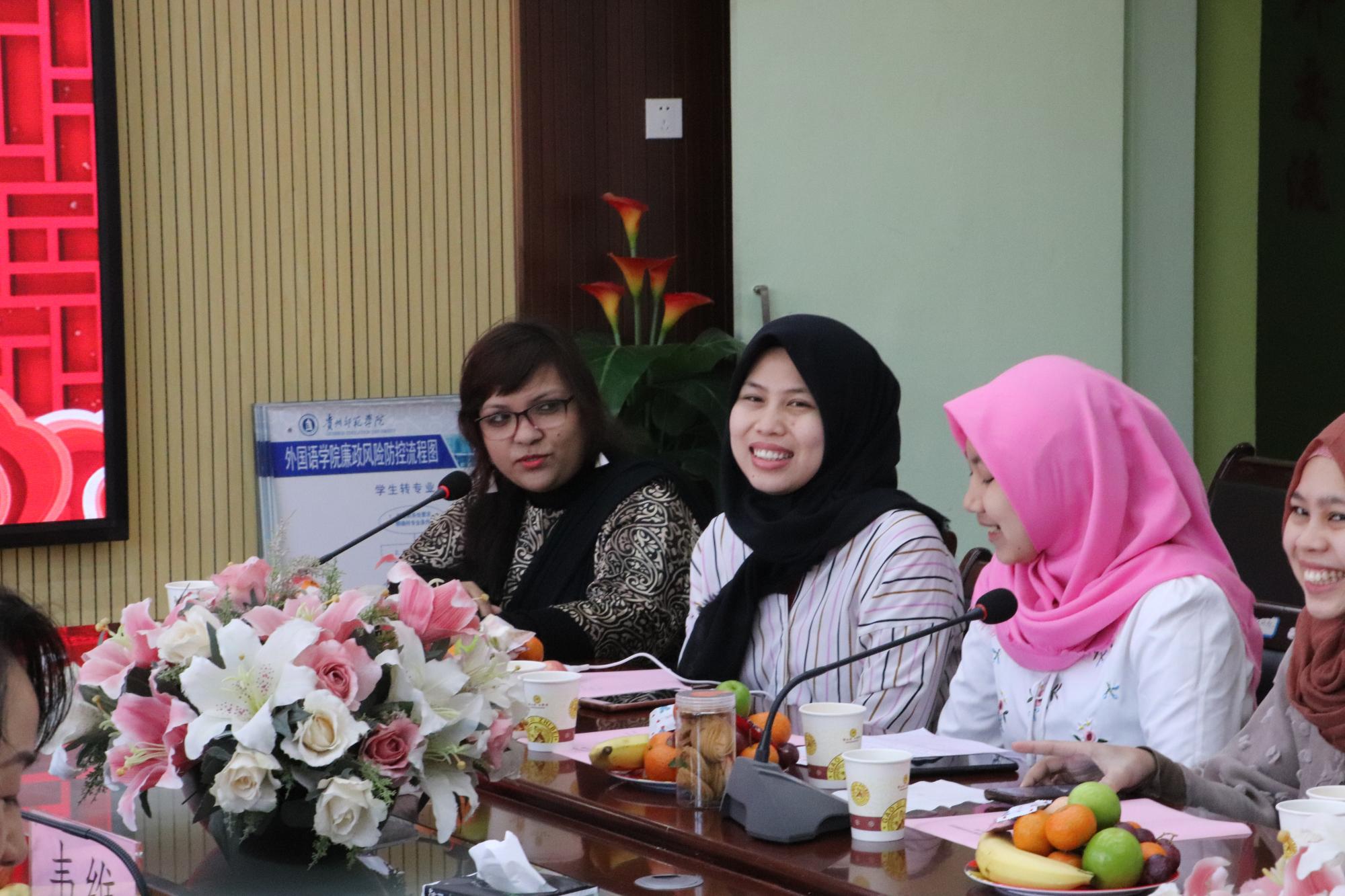 国际交流合作处、外国语学院相关人员以及志愿者代表参加了座谈会。