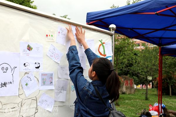 早晨7点,全体队员井然有序的组织活动,在鉴湖旁“修筑”了文明的"道路”。 此次活动由播放校园文明视频、粘贴文明表情包、拼凑文明校园展报和点赞校园文明海报组成。通过这些青年学生们喜闻乐见的方式,吸引同学们纷纷驻足观看并参与活动。参与是对文明的践行,按指印是对文明的承诺,广泛参与是对文明的传播。虽然天空飘着蒙蒙细雨,但活动却如火如荼的进行着,直至下午六点,活动渐渐地进入了尾声。
