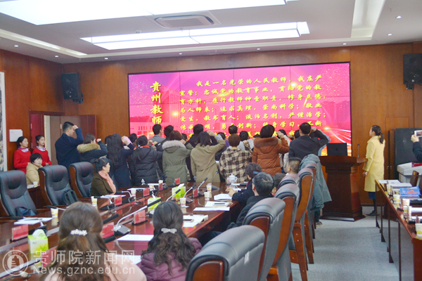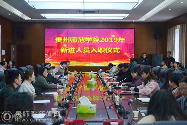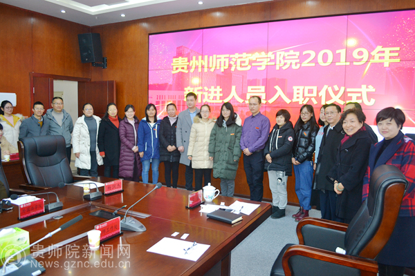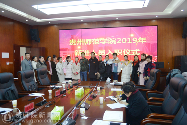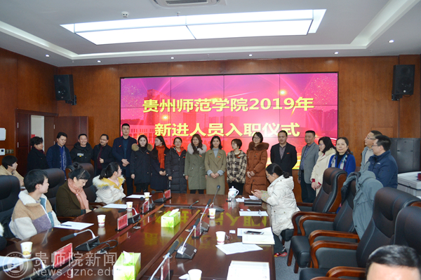 本网讯 “我是一名光荣的人民教师,我庄严宣誓,忠诚党的教育事业,贯彻党的教育方针,履行教师神圣职责。修身立德,为人师表;追求真理,崇尚科学;敬业爱生,教书育人;淡泊名利,严谨治学;传承文明,勇于创新;终身学习,不断进步。为全体学生美好未来,我愿奉献全部智慧和力量!”2月25日下午,2019年新进人员入职仪式在学校信息楼二楼会议室隆重举行。我校27名2019年新进人员在入职仪式上庄严宣誓,铿锵有力的誓言,紧握高举的右拳,是每一位新进人员的自我期许,更是对贵师院教育的庄严承诺。学校副校长郭文、熊世桓,组织部、学工部、工会、教务处、科研处、人事处、教师工作处等相关职能部门负责人,新进人员所在二级单位负责人等也见证了这重要的时刻。