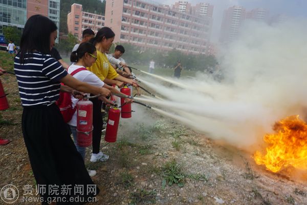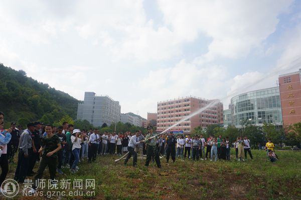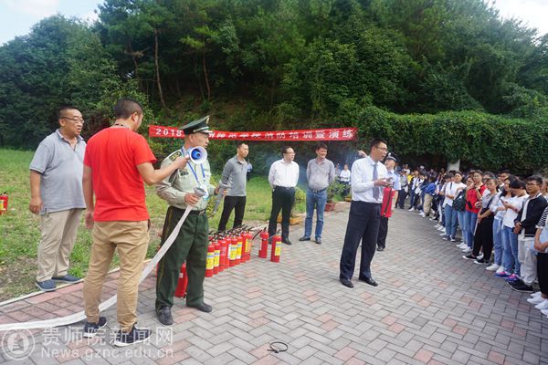 本网讯 为创建平安文明校园,使广大新生提高消防安全意识,9月25日,我校在鉴湖旁边开展消防培训及实战演练活动,校领导令狐荣锋到现场指导工作,保卫处处长蒋江南、学工部部长韩宝银、保卫处全体人员、高新路派出所民警、物管公司、18级新生代表参加培训及演练活动。本次活动特邀乌当区消防大队参谋曹徽为师生进行消防安全知识讲解。