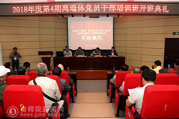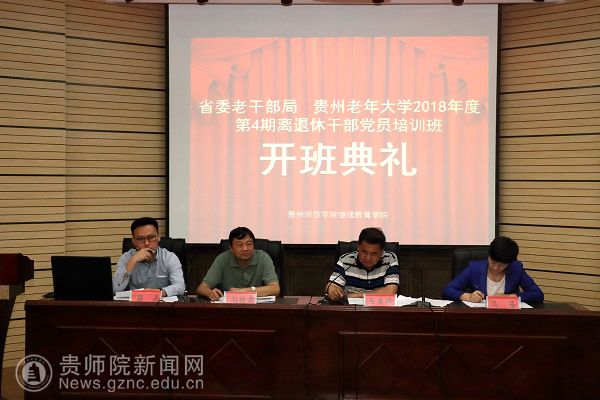 本网讯 5月15日上午,由中共贵州省委老干部局、贵州老年大学主办,万象城网页版承办的2018年第4期离退休干部党员培训班开班仪式在我校继续教育学院报告厅举行。省委老干部局活动指导处处长吴春峰,贵州老年大学党建处副处长马芳,万象城网页版继续教育学院院长赵德肃出席了开班仪式,开班仪式由继续教育学院培训部主任蔡晶主持。