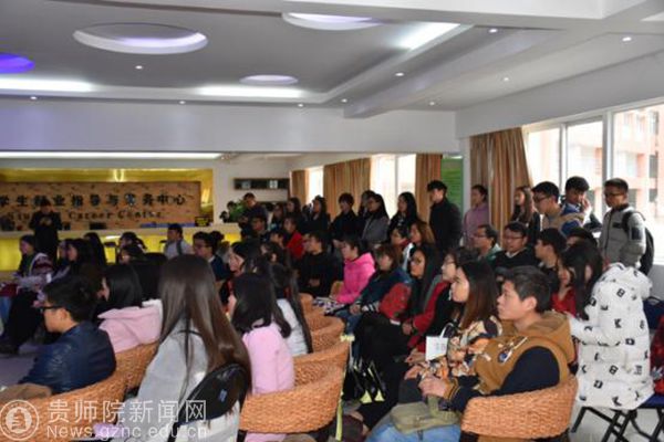 本网讯 3月15日,我校地理、旅游类专业2017届毕业生专场招聘会在文韬苑就业大厅举行,包括贵州省第三测绘院、贵阳旅文旅游公司、贵州千景土地科技有限公司等近20家在省内外从事国土、测绘、水利、规划、景区开发与酒店管理、旅行社、金融、旅游商品开发等方面优秀企事业单位到我校招聘地理、旅游类专业应届毕业生。其中不乏省市重点大型企业、央企、上市公司。参加招聘会的毕业生还有外国语学院、政经学院、历社学院、艺术学院、数计学院、设计学院相关专业毕业生。