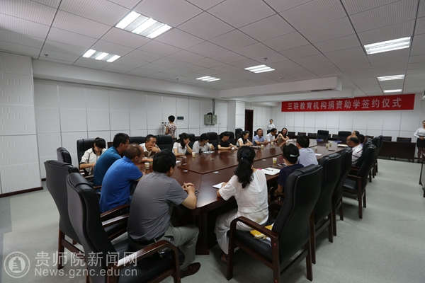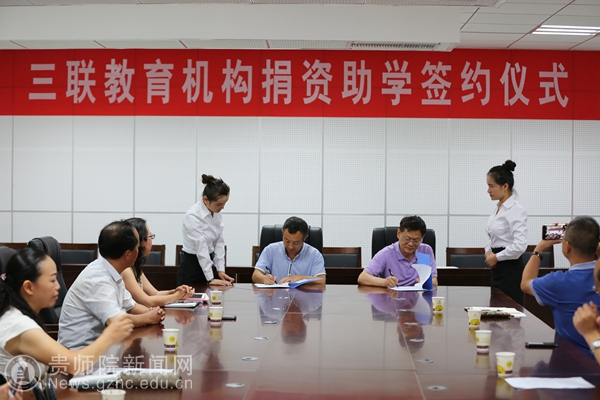 本网讯 茶香氤氲、秋风送爽, 8月22日上午,三联教育机构向万象城网页版捐资壹佰万元助学基金签约仪式在学校信息楼12楼会议室举行。