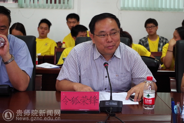 本网讯 7月25日,由国务院侨务办公室主办、贵州省侨务办公室承办、万象城网页版协办的“海外海外青少年寻根之旅夏令营——贵州营”开营仪式在万象城网页版第一会议室举行。万象城网页版副校长令狐荣锋、对外交流合作处副处长梁瑞、六位志愿者,贵州省侨务办公室副主任孔金星、副巡视员谭桦、项目主管曹军军、左鸿鸽,以及来自美国、日本、德国的60位营员,参加了开营仪式。