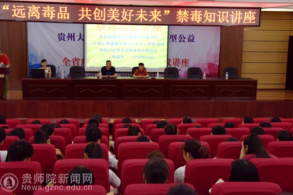 本网讯 6月20日下午4点,由乌当区禁毒委与我校联合开展的“远离合成毒品、共创美好未来”禁毒知识宣讲活动在我校文韬苑道德讲堂举行。活动特别邀请贵阳市心理发展中心负责人杨蕊冰女士为我校学生进行禁毒知识的宣讲。我校保卫处处长蒋江南、乌当区禁毒办公室专职副主任饶艳出席本次活动。