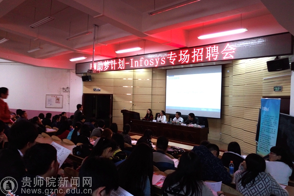本网讯 为切实做好数学与计算机科学学院毕业生就业工作,大力构建毕业生与用人单位的交流平台,积极为用人单位输送应用型人才。4月26日下午,数学与计算机科学学院在宁静楼152开展了“HW助梦计划-Infosys专场”招聘会。此次招聘会是印孚瑟斯技术有限公司的专场招聘会,参加招聘会的有我院2012级计算机科学与技术专业的全部同学及2013级部分计算机科学与技术专业的同学。