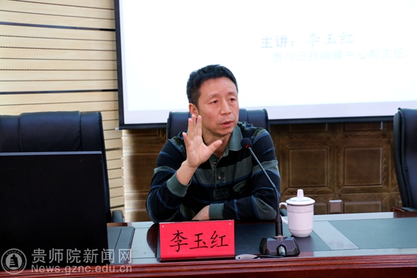 贵州日报编辑中心副主任、时事新闻部主任李玉红受邀为我校各部门通讯员和学生记者作了一场题为《新闻基本样式解读》的讲座。讲座由宣传部部长邹晓青主持。