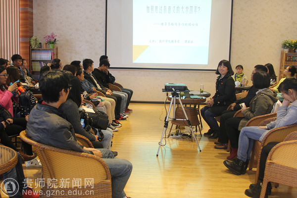 11月3日下午,我校心理健康咨询中心主任宛蓉教授在成长驿站与学生座谈,以“阳光心态,健康成长”为话题开展“心灵有约”活动。在同学们阵阵热烈的掌声中,宛教授从生命的特点、大学生对生命的困惑等方面探讨了有关健康心态的价值,通过丰富生动的案例,启发同学们做一个阳光心态的人,对生命、对人生的价值有了更深刻的认识和全新的感悟。