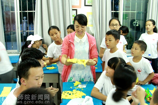 职业技术学院14工艺美术班的志愿者和岳红霞交流之后,对剪纸艺术产生了极大的兴趣。经点拨他们认识到,剪纸艺术强调黑白灰的搭配,和素描有异曲同工之妙, 艺术作品需要不断地融合,在融合中寻找新的创意,而且,他们也得到岳红霞的热情鼓励,以更贴近孩子们的视角观察世界并进行艺术再现,把所学专长应用到夏令营教学活动中。