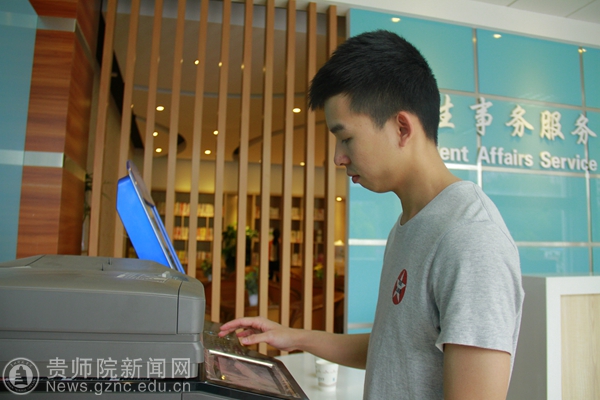 我校学生事务中心改革后的另一亮点就是增设了“学子之窗”的自助服务区。在这里,中心主要设立了学生证书自助打印机、学费缴费机、一卡通学生补助发放机(圈存机)和农业银行存取款一体机,为学生提供了证书打印、自助缴费、一卡通管理、资助存取款的自助服务项目。
