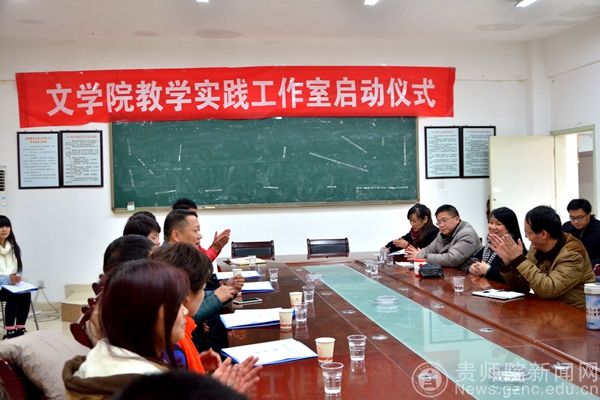 为了推动学科专业建设,培养知识型、应用型优秀人才,文学院于12月12日携手贵阳电视台新闻频道、法制频道、《南风》杂志社共建教学实践工作室启动仪式在文学院会议室举行。出席会议的嘉宾有贵阳电台视新闻频道播音部主任钟华,贵阳电视台法制频道制片总监王锋、总制片赵相阳、首席记者邓和、鲍黔西,《南风》杂志主编冉正万。参加会议的有文学院党委书记韦丹、院长吴俊、副院长刘海涛、院团委书记陈亦桥以及文学院广电、汉语言文学专业部分师生代表。会议由韦丹主持。