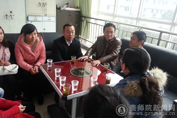 为充分了解我校学生在平坝县的实习生活情况,及时帮助他们解决遇到的问题和困难,11月18日,文学院院长吴俊、教务处副处长陈业强和辅导员詹峰到平坝县看望我校国培顶岗实习学生,并在平坝二中校长办公室召开了座谈会。