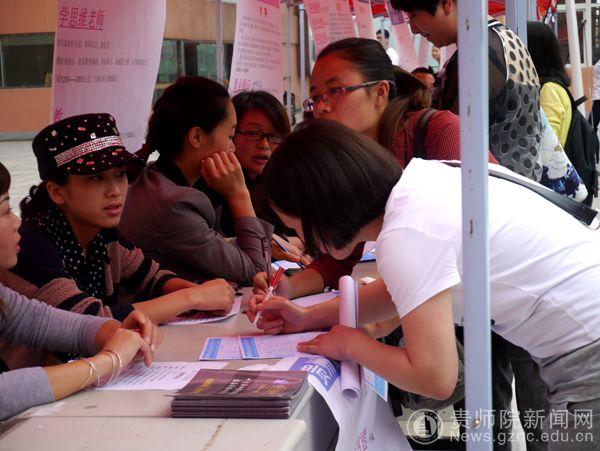 手里拿着7、8张企业名片的职业技术学院党委书记侯晓薇喜笑颜开的告诉我们:“今天收获还不少!”在谈及学院就业工作时她说,根据学校的明确要求,我院一直将此事抓在手上,使其常态化,我院专门成立了就业工作领导小组,每周例会都反馈领导小组工作情况、存在问题,并对下阶段的就业工作安排部署。目的是要改变老师们以往只重教学不关心就业的观念,而现实是只有两者并重,才能让教学更好与社会接轨,所有我们要求每位教师牵手一个企业。目前,经过大家的努力,从5月25日至今学院为毕业生和即将实习的学生举行了10多场小型招聘会,很受同学欢迎。今年,我院有163人毕业生,目前已有90%多的学生与用人单位签约。”