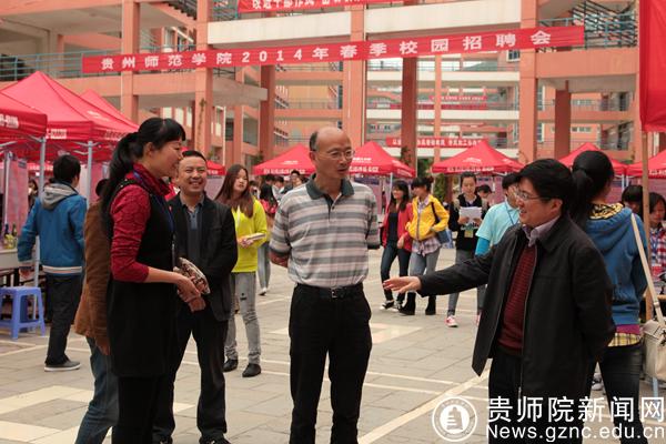 校党委书记陈扬(右一)、副校长汪羿(右二)到招聘会现场指导相关工作