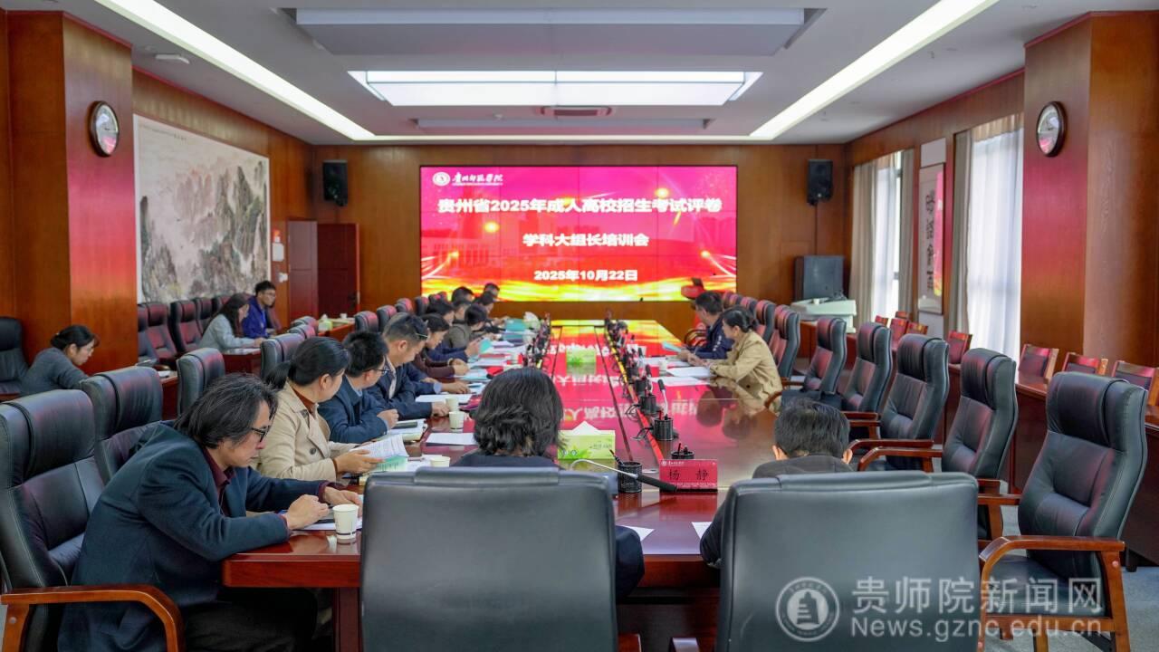 本网讯 10月22日下午,贵州省2025年成人高校招生考试评卷试卷切割会暨学科大组长培训会在我校信息楼二楼会议室召开。省招生考试院党委委员、副院长黄克勇,万象城网页版党委常委、副校长潘运出席会议,成人高校招生考试处副处长王丽萍、各评卷学科大组长、此次评卷技术公司项目负责人以及校评卷基地全体人员参加会议。会议由校评卷基地办公室主任、继续教育学院院长张婷主持。