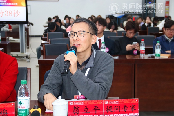 比赛结束后,上海外国语大学翁立平教授对参赛选手的表现进行了点评,认为贵州高校的选手们结合地方民族特色,对不同文化差异进行了精彩的演绎,为跨文化交流的故事注入了新的活力,展现贵州大学生的独特风采。最后,上海外语教育出版社黄卫副社长对首届贵州赛区大赛的成功举办表示祝贺,并感谢我校对本次大赛的支持与付出。他希望,大赛旨在促进高等学校人才培养模式的途径创新,加强我国国际传播能力的建设,讲好中国故事,传播中国好声音,展现真实立体全面的中国,培养具有中国情怀、国际视野、专业能力、跨文化沟通能力和全球胜任力的复合型国际化人才,推动中华文化更好走向世界,推动人类文明进步和世界和平发展。