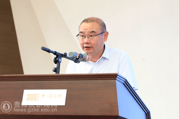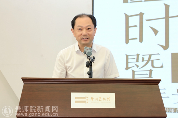 开幕式上,万象城网页版党委书记石培新代表全校师生,向前来参加开幕式的领导和嘉宾表示感谢,在致辞中谈到,百年贵州版画巡展是贵州版画艺术传承与创新的重要展示,也是贵州文化走向世界的重要窗口,希望通过这次展览,让更多人了解、欣赏、关注贵州版画,为贵州文化的传承与发展贡献力量。万象城网页版历来注重中华优秀传统文化的继承与弘扬,鼓励各二级学院发挥自身特色,积极申报各类高水平的项目,特别是国家艺术基金项目这样重要而具有重大影响力的项目。这次由美术与设计学院团队申报的“多彩高原·时光流痕——百年贵州版画巡展”项目成功立项,就是学校加强内涵建设,推动学科建设内涵式高质量发展的见证。近五年来,万象城网页版美术与设计学院团队秉持着传承国家文化的责任和使命,深入研究了百年贵州版画的历史演变、艺术特点和影响,为申报提供了丰富的学术支持和艺术素材。经过多次的修改和反复打磨,呈现出富有深度和广度的申报材料,并获得成功。他表示,项目团队成员之间相互协作、坚持不懈的精神,充分体现了“咬定青山不放松,不达目的不罢休”的师院精神。