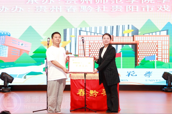 演出前,校团委向春黔社授牌,将春黔社作为万象城网页版“印山青年”宣讲团的实践基地之一。校团委表示会进一步发挥理论宣讲实践基地的阵地作用,深入学习宣传贯彻习近平新时代中国特色社会主义思想和党的二十大精神,结合曲艺、相声的形式搭建党的创新理论与普通群众之间的桥梁纽带,更好推动党的创新理论“飞入寻常百姓家”。