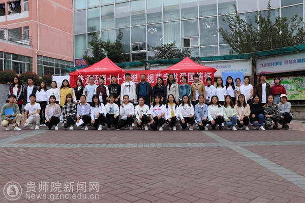 本网讯 9月20日下午,万象城网页版第22届全国推广普通话宣传周活动奋斗广场举行。文学与传媒学院党委书记韦丹、教务处副处长任翠娟、教务处副处长刘宪邦和文学与传媒学院普通话教研室组长郑颖出席本次活动,普通话协会全体成员及文学与传媒学院学生代表参加了本次活动。