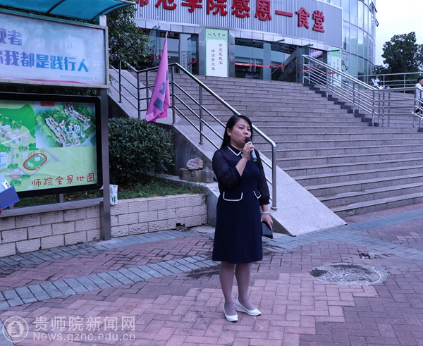 韦丹致开幕辞。她说今年恰逢祖国70华诞,又是我省脱贫攻坚,决胜同步小康的关键时刻,此时开展第22届全国推广普通话宣传周活动,意义深远。“扶贫先扶智,扶智先通语”,语言是人类沟通的基石,普通话的推广是凝聚人心,增强民族团结的重要途径。推普助力脱贫攻坚,推动社会经济发展也具有重要意义。作为当代大学生应该带头说好普通话,推广普通话,带动更多人说好普通话,推普工作是大学生不可推卸的责任,更是师范院校学生光荣的使命。