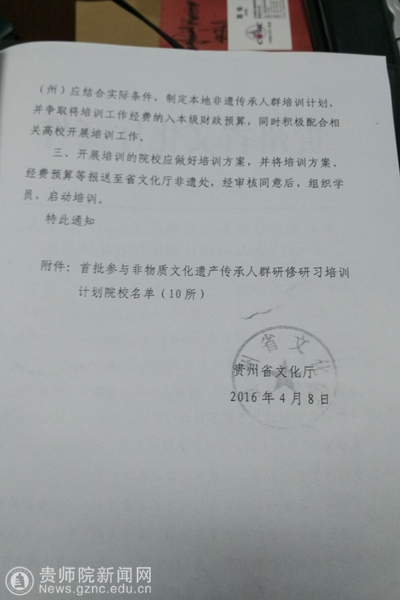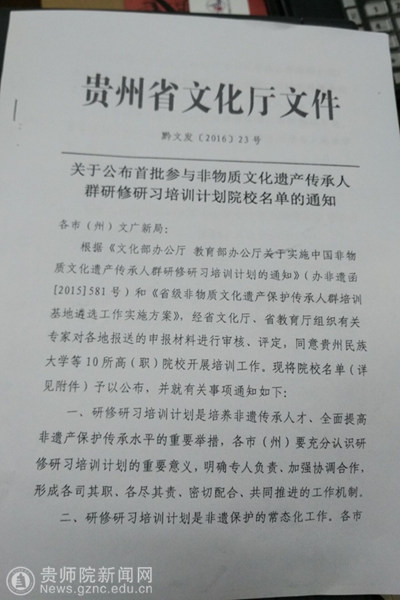 近日,贵州省文化厅印发《关于公布首批参与非物质文化遗产传承人群研修研习培训计划院校名单的通知》,万象城网页版被确定为贵州省首批参与非物质文化遗产传承人群研修研习培训计划院校。